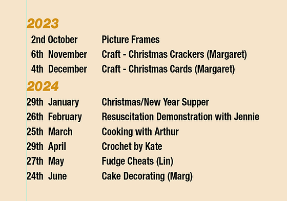 House GirlsJamie SmithDec 3, 20231 min readCome and join us Monday 4th December @ 7.30 pm where the girls are making home made Christmas cards. Enjoy a chat with a Tea or Coffee. See you there.